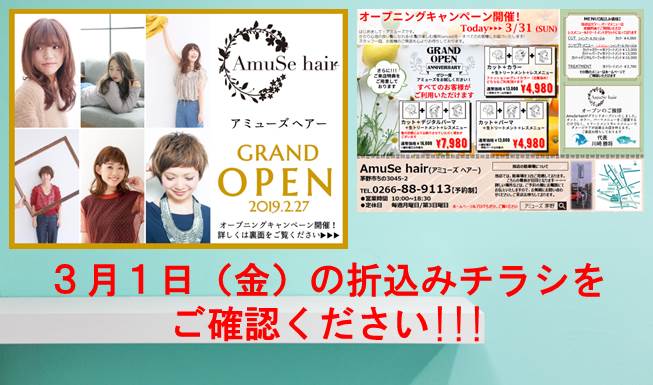 オープニングキャンペーンスタート!!!(茅野市のヘアサロン アミューズです)