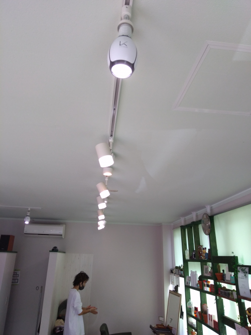 店内のライトを光触媒にかえました!!天井からの除菌になります!インフルエンザやコロナに対応可能とのことです!
